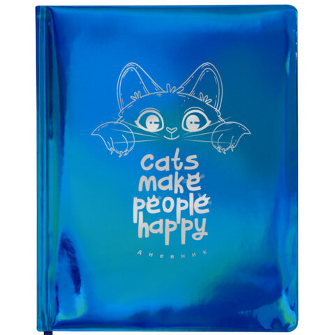 Дневник 1-11 класс 48 л., кожзам (твердая с поролоном), фольга, BRAUBERG HOLIDAY, "Веселый Кот", 106916