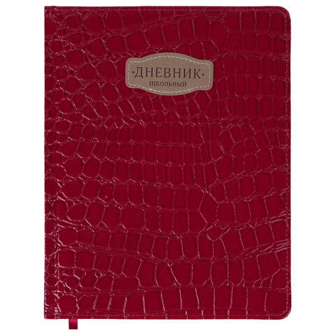 Дневник 1-11 класс 48 л., кожзам (твердая с поролоном), нашивка, BRAUBERG "CROCODILE", красный, 106938