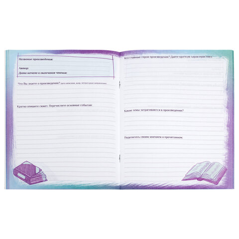 Дневник читательский А5, 40 л., скоба, обложка картон, с цветным блоком, ПИФАГОР "Мир книг", 113448
