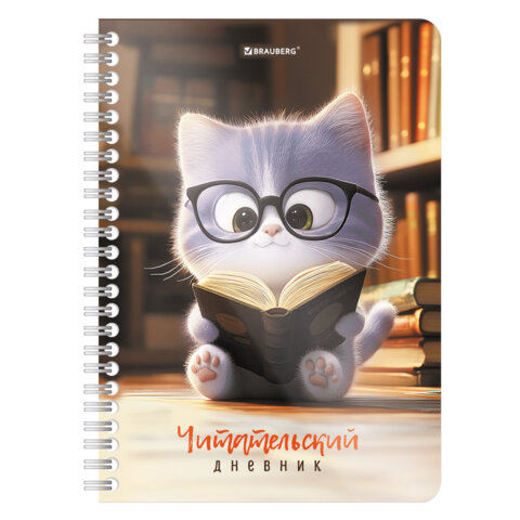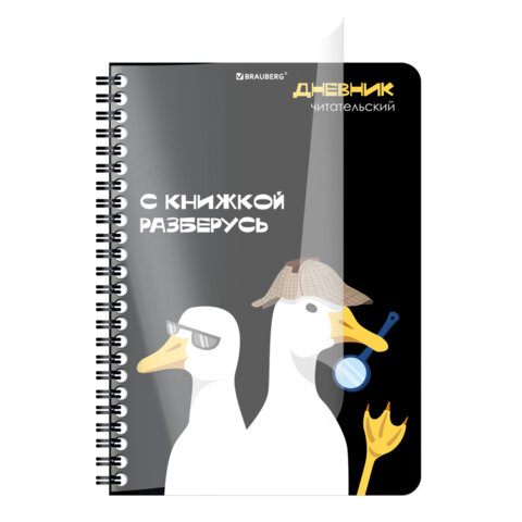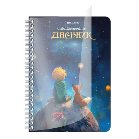 Дневник читательский А5, 58 листов, гребень, пластиковая обложка, картон, BRAUBERG, "МИКС", 118528