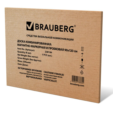 Доска комбинированная: магнитно-маркерная, пробковая для объявлений 90х120 см, BRAUBERG Extra, 238184