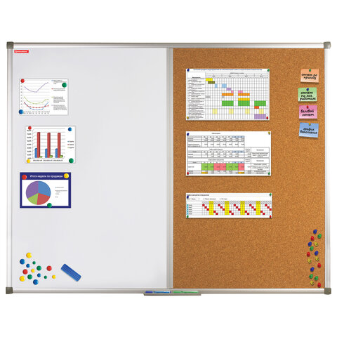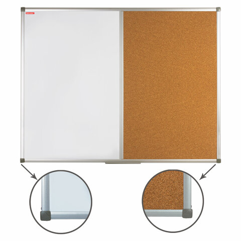 Комбинированная доска BRAUBERG - магнитно-маркерная и пробковая доски в единой рамке - позволит разместить объявления при помощи кнопок и офисных булавок. Широко используется в организациях различного рода деятельности.