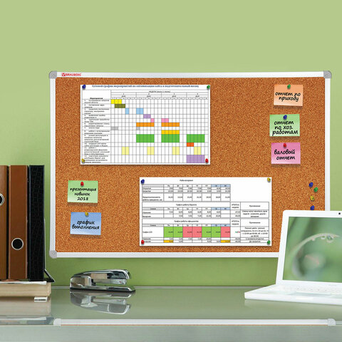 Пробковая доска BRAUBERG позволит разместить объявления при помощи кнопок и офисных булавок. Широко используется в организациях различного рода деятельности.