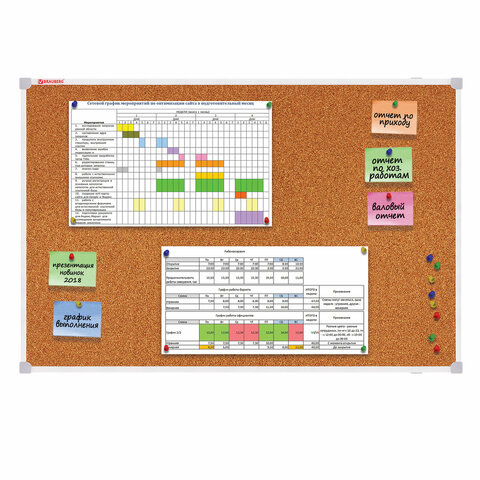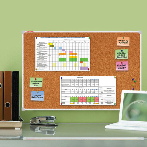 Пробковая доска BRAUBERG позволит разместить объявления при помощи кнопок и офисных булавок. Широко используется в организациях различного рода деятельности.