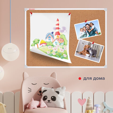 Доска пробковая 70х50 см, ПВХ-рамка, ГАРАНТИЯ 10 ЛЕТ, РОССИЯ, BRAUBERG, 238188