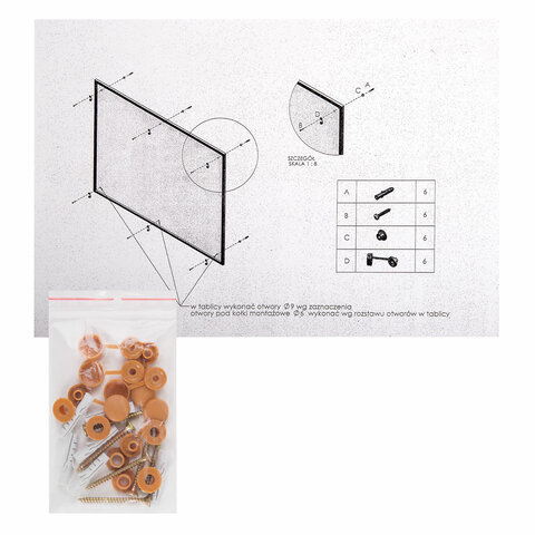 Пробковая поверхность доски позволяет легко размещать информацию и объявления с помощью кнопок, офисных булавок и т.п. Скрытое крепление к стене в четырех углах.