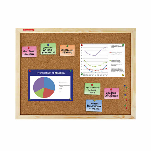 Пробковая доска BRAUBERG Wood в деревянной рамке - прекрасный выбор для размещения объявлений при помощи кнопок и офисных булавок. Широко применяется в различных организациях.