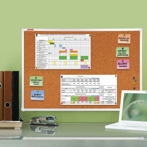 Доска пробковая для объявлений 60х90 см, алюминиевая рамка, ГАРАНТИЯ 10 ЛЕТ, РОССИЯ, BRAUBERG, 231712