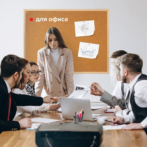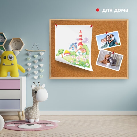 Доска пробковая для объявлений 90х120 см, деревянная рамка, ГАРАНТИЯ 10 ЛЕТ, РОССИЯ, BRAUBERG, 236861