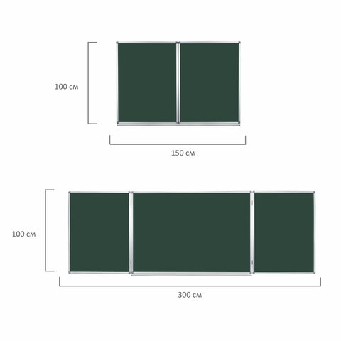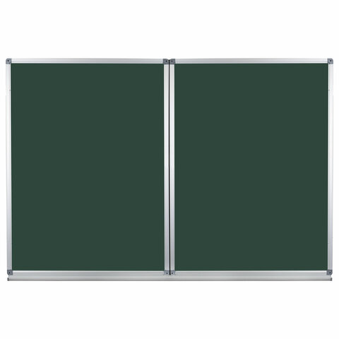 Доска для мела магнитная 3-х элементная 100х150/300 см, 5 рабочих поверхностей, зеленая, STAFF, 238009