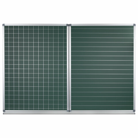 Доска для мела магнитная 3-х элементная 100х150/300 см, ДОПОЛНИТЕЛЬНАЯ ЛИНИЯ/КЛЕТКА, зеленая, STAFF, 238011