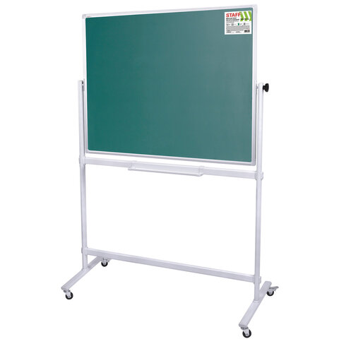Доска для мела/магнитно-маркерная НА СТЕНДЕ 100х150 см, 2-сторонняя, зеленая/белая, STAFF, 238006