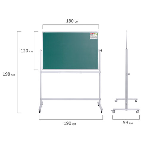 Доска для мела/магнитно-маркерная НА СТЕНДЕ 120х180 см, 2-сторонняя, зеленая/белая, STAFF, 238007