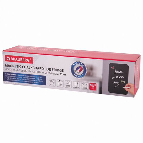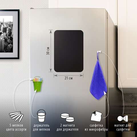 Доска на холодильник магнитно-меловая 30х21 см с мелками, магнитом и салфеткой, BRAUBERG, 237843