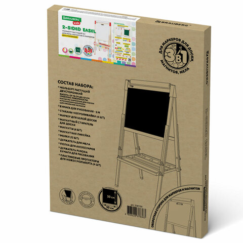 Мольберт растущий 3 в 1 для мела/магнитно-маркерный 50х50 см, бумага для рисования, BRAUBERG KIDS, 238150