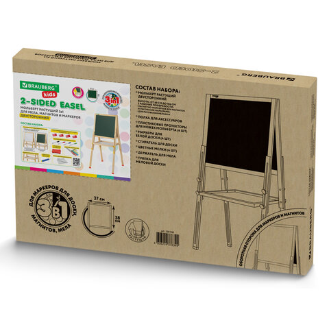 Мольберт растущий двусторонний BRAUBERG KIDS предназначен для развития творческих способностей ребенка и обустройства игрового пространства в детских учреждениях и дома.