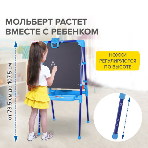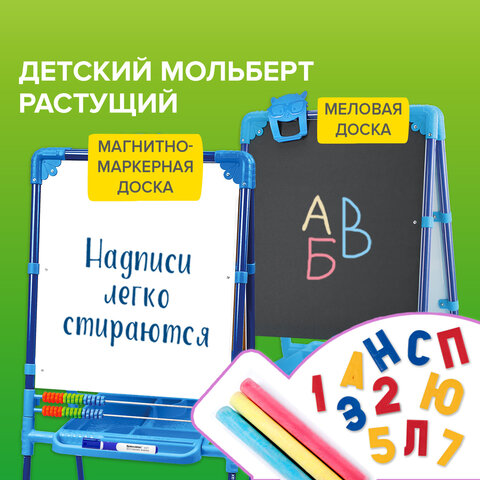 Мольберт растущий для мела/магнитно-маркерный, 53х46 см, BRAUBERG "NIKA KIDS", синий, 238049