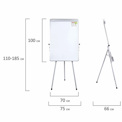 Доска-флипчарт магнитно-маркерная 70х100 см, тренога, регулируемая высота, STAFF, 238002