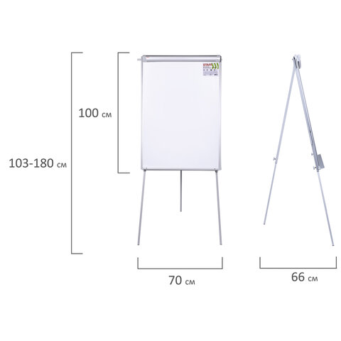 Доска-флипчарт с дополнительными держателями для бумаги, магнитно-маркерная, 70х100 см, тренога, STAFF, 238004