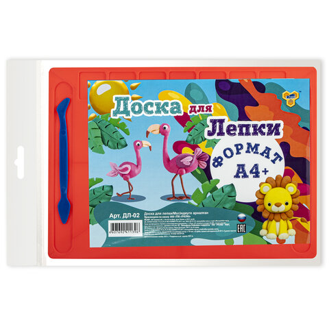 Доска для работы с пластилином имеет удобную, функциональную форму с углублениями для стеков и пластилина. Производится из специального пластика, к которому не липнет пластилин. Поставляется в нескольких вариантах цвета (без возможности выбора).