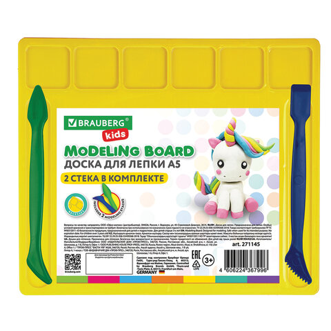 Доска для лепки с отделениями и 2 стеками А5, 200х170 мм, ассорти, BRAUBERG KIDS, 271145