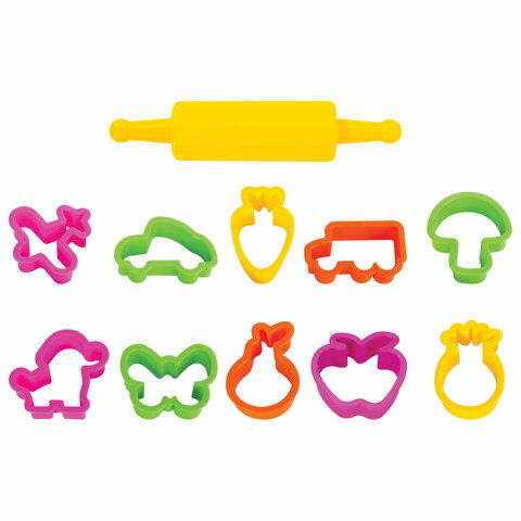 Формочки для лепки 10 штук и скалка ЮНЛАНДИЯ, европодвес, 229621