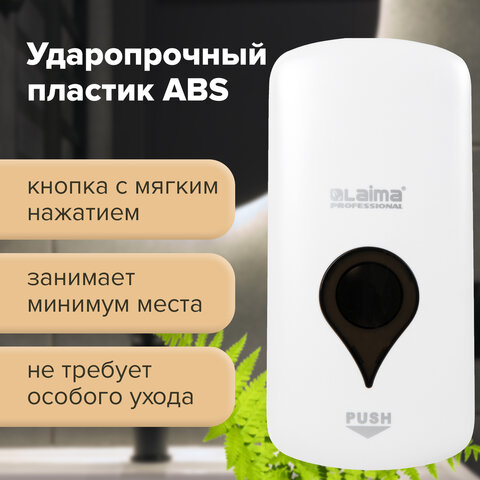 Дозатор для мыла-пены ULTRA LAIMA PROFESSIONAL, НАЛИВНОЙ, 1 л, белый, ABS-пластик, 606832