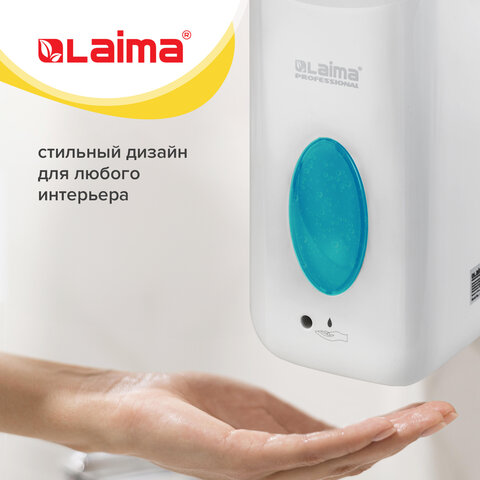 Дозатор для жидкого мыла LAIMA CLASSIC, НАЛИВНОЙ, СЕНСОРНЫЙ, 1 л, с блоком питания, белый, 607318
