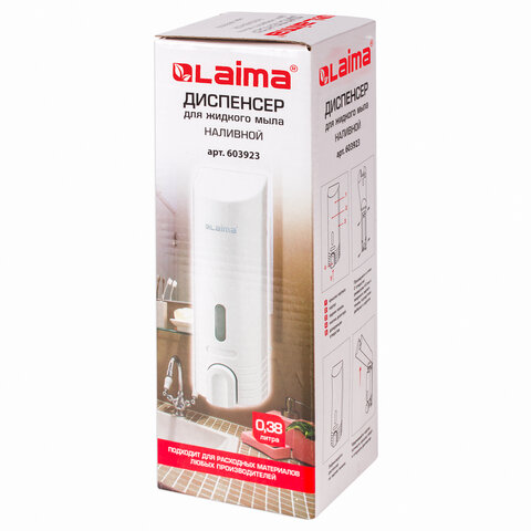 Дозатор для жидкого мыла LAIMA, НАЛИВНОЙ, 0,38 л, белый, ABS-пластик, 603923