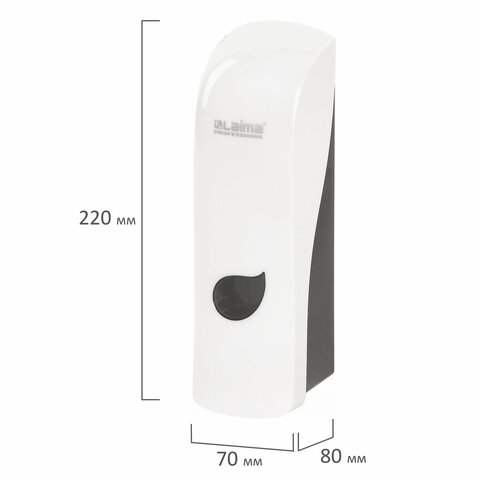 Дозатор для жидкого мыла LAIMA PROFESSIONAL ECO подходит для использования в местах с любой проходимостью, таких как туалетная комната в ресторане, офисе, торговом центре. Отличается компактными размерами и оригинальным дизайном.
