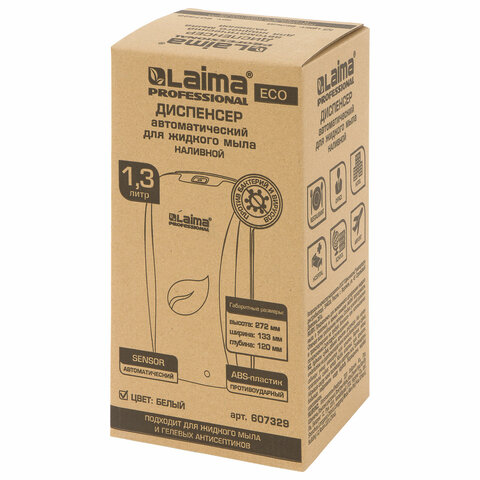 Дозатор для жидкого мыла LAIMA PROFESSIONAL ECO, НАЛИВНОЙ, СЕНСОРНЫЙ, 1,3 л, белый, 607329