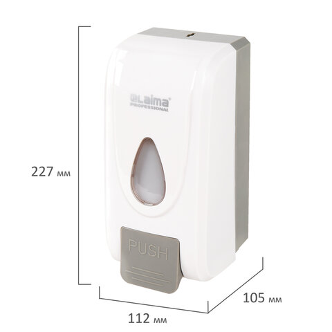 Дозатор для жидкого мыла-пены LAIMA PROFESSIONAL ECONOMY, НАЛИВНОЙ, 1 л, ABS-пластик, белый, 607322, X-2228-F1