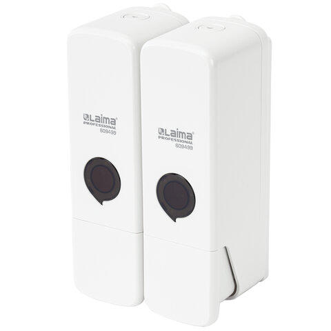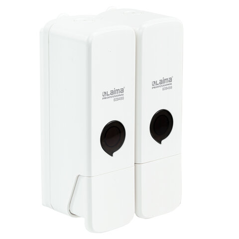 Дозатор двойной 2 х 0,3 л для жидкого мыла/шампуня/геля LAIMA PREMIUM, НАЛИВНОЙ, белый, ABS-пластик, 609499