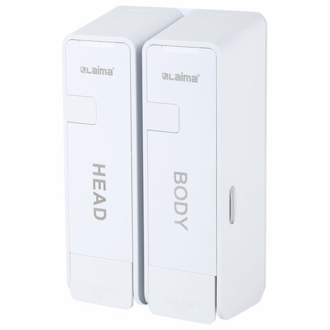 Дозатор для жидкого мыла/шампуня/геля LAIMA ULTRA двойной 2х0,38 л. Благодаря конструкции из двух дозаторов, максимально удобен для использования в душевых комнатах с шампунем и гелем. Подойдет и для стандартного применения с обычным жидким мылом.