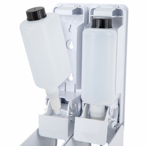 Дозатор двойной 2х0,38 л для жидкого мыла/шампуня/геля LAIMA ULTRA, НАЛИВНОЙ, белый, 609107, MD-9029W-2