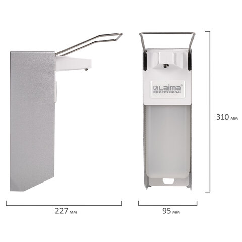 Дозатор локтевой для жидкого мыла и геля-антисептика, с еврофлаконом 1 л, LAIMA, металлический, 605706