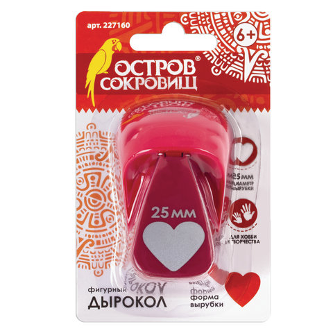Дырокол фигурный "Сердце", диаметр вырезной фигуры 25 мм, ОСТРОВ СОКРОВИЩ, 227160