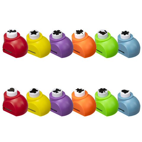 Дыроколы фигурные, НАБОР 12 видов, диаметр вырубки 16 мм, ОСТРОВ СОКРОВИЩ, 665227