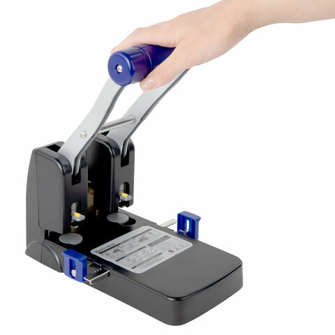 Дырокол металлический МОЩНЫЙ BRAUBERG "EXTRA Heavy duty", до 110 листов, черно-синий, 272721