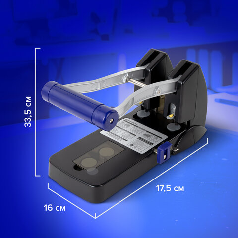 Дырокол металлический МОЩНЫЙ BRAUBERG "EXTRA Heavy duty", до 160 листов, черно-синий, 272722