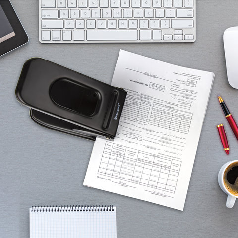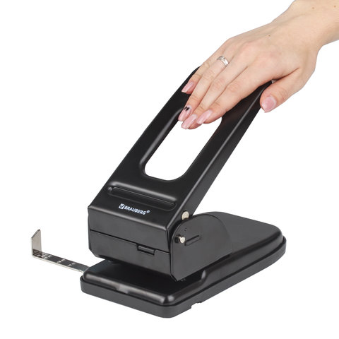 Дырокол BRAUBERG "Heavy duty" – это необходимый офисный предмет, с помощью которого можно аккуратно пробивать отверстия в бумаге и затем подшивать документы в папку. Предназначен для перфорации большого объема бумажных листов.