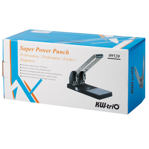 Дырокол металлический МОЩНЫЙ KW-trio, до 150 л., черный, 952