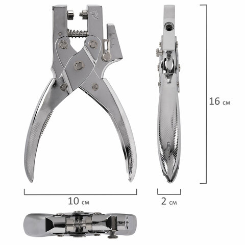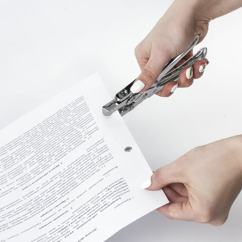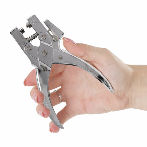 Металлический дырокол BRAUBERG предназначен для пробивания одного отверстия и установки люверса.