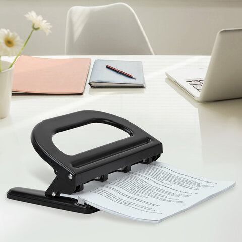 Дырокол повышенной мощности на 4 отверстия с регулируемым расстоянием между отверстиями. Отлично подойдет для работы с большим объемом подшиваемых документов (работа с каталогами, архивами, бухгалтерскими документами).