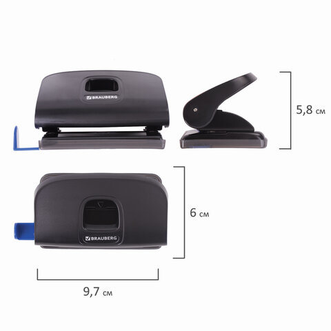 Дырокол BRAUBERG "Extra", до 10 листов, черный, 229090