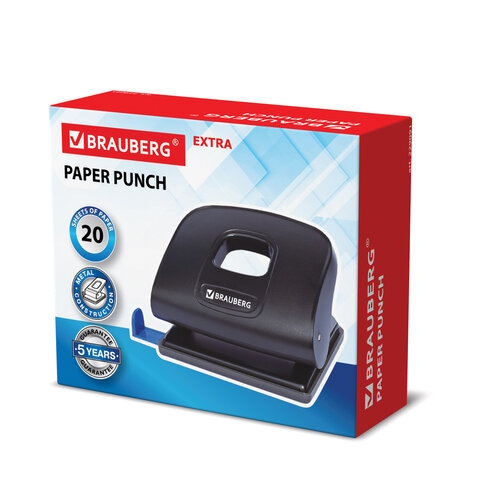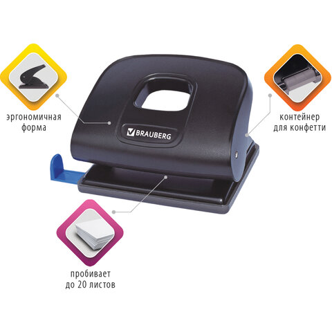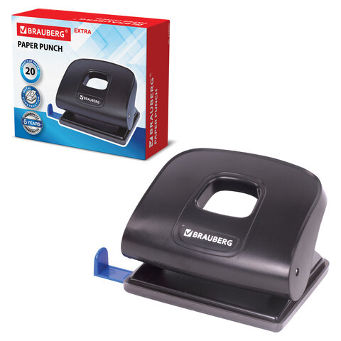 Дырокол BRAUBERG "Extra", до 20 листов, черный, 229091