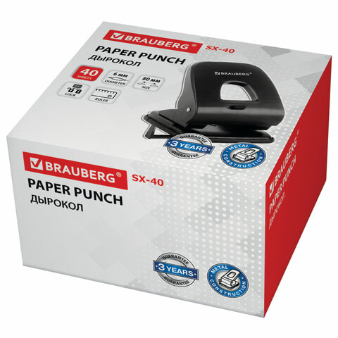 Дырокол BRAUBERG "SX-40", до 40 листов, черный, 229695