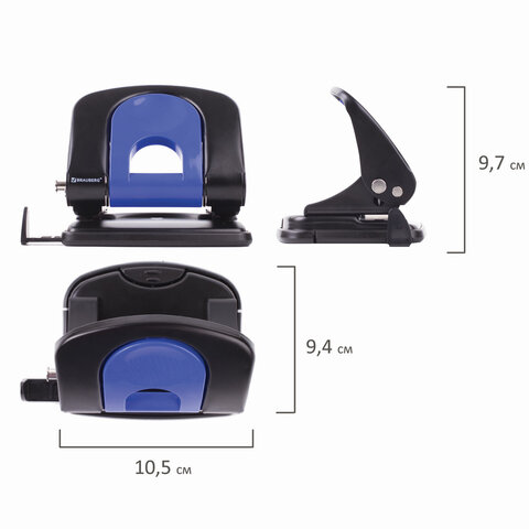 Дырокол металлический BRAUBERG "Office-Expert", до 25 листов, черно-синий, 228604