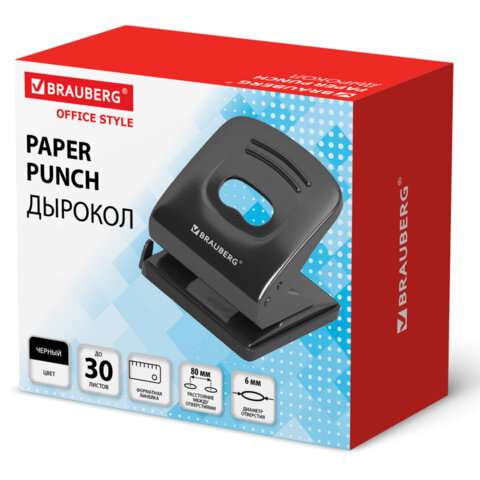 Дырокол металлический BRAUBERG "Office style", до 30 листов, черный, 273954