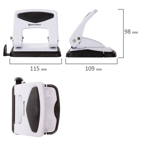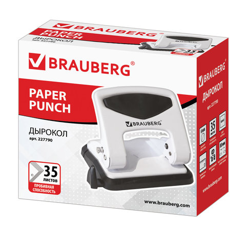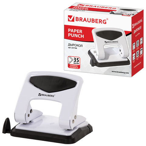Дырокол металлический BRAUBERG "PN-150M", до 35 листов, белый, 227790